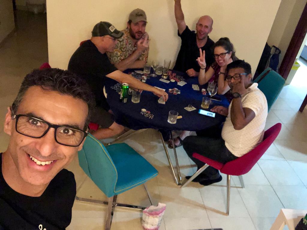 Since around 2012, Doug and I were also part of a group of work colleagues that used to get together for illegal poker nights (shhh, don’t tell anyone).  There was also Kevin (a Maltese air traffic controller), Rickard (a Swedish air traffic controller), Leewin (a UAE-born Indian air traffic assistant, turned corporate administrator) and of course David.  Let me tell you, trying to schedule a poker night with six people that are working opposing shifts is nigh on impossible, so we didn’t play as often as we would have liked.  But when we did, oh boy, did we have some fun! Over the years, our numbers dwindled as Rickard moved back to Stockholm, and then Doug retired to Canada.  Now that David and I are also leaving Dubai, there’s almost no chance we’ll ever be able to gather the whole crew together again and that does make me feel quite sad.  But the poker gods smiled upon us in June of this year and the six of us got together at our place for one last drunken hurrah of The Desert Aces!  Trust me when I say, we made it count!