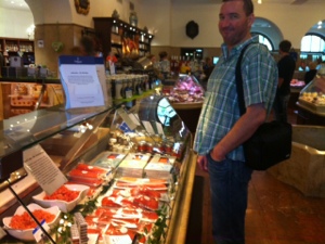 So when, in our search for a place to buy a few local delicacies, we were guided towards the Dallmayr shop, we kind of balked a little. Made some jokes about all the different varieties of sludge we could choose from. Haha! We couldn’t have been more wrong. We walked into a Delicatessen wonderland. It was bursting full of meats, cheeses, seafood (so fresh that some of it was still alive!), breads, fruit and vegetables, salads, dips, fresh pasta, cakes and pastries!! And to top it off there was a little Moët et Chandon café where you could drink the stuff by the glass. How civilised!!!