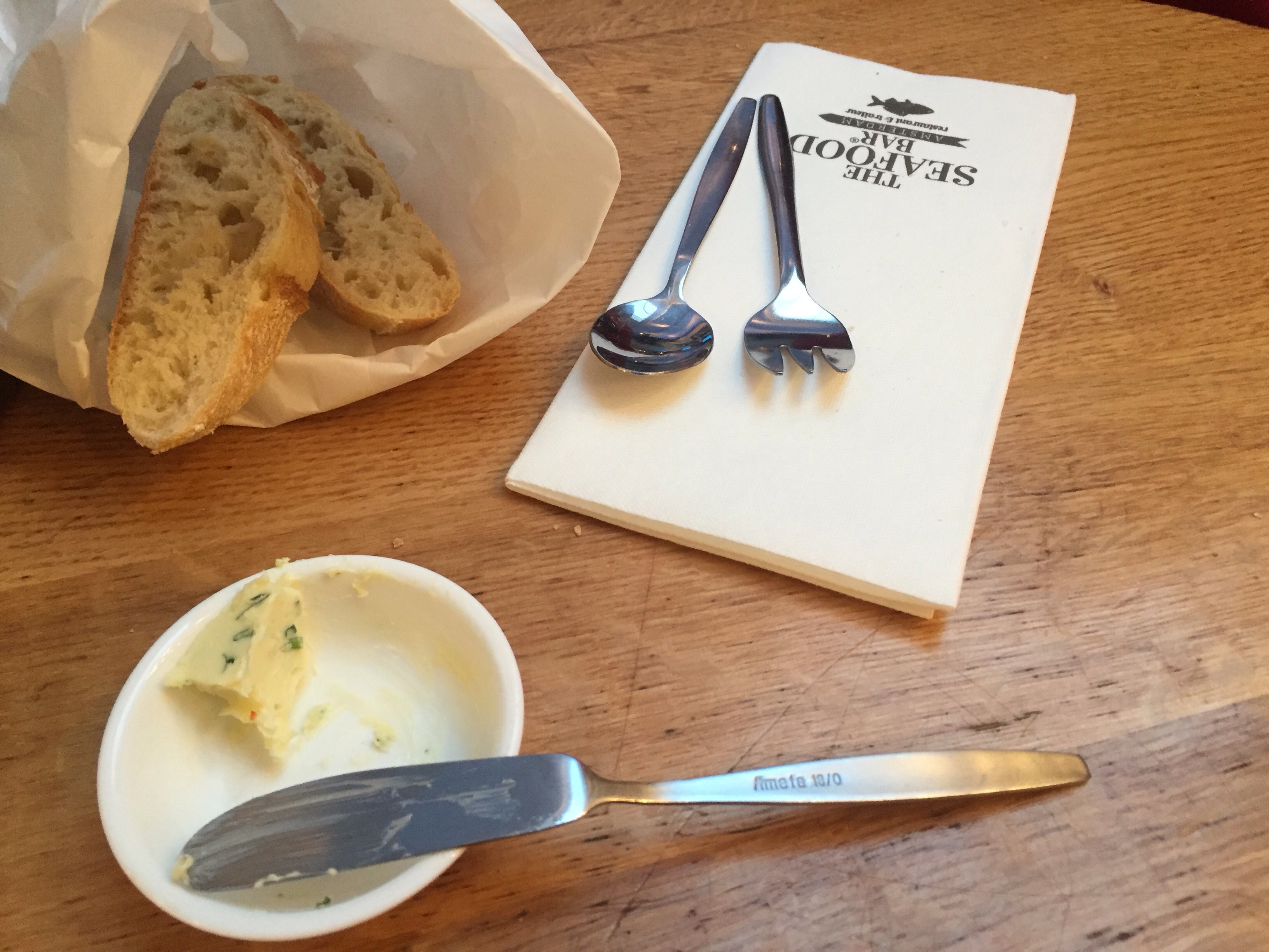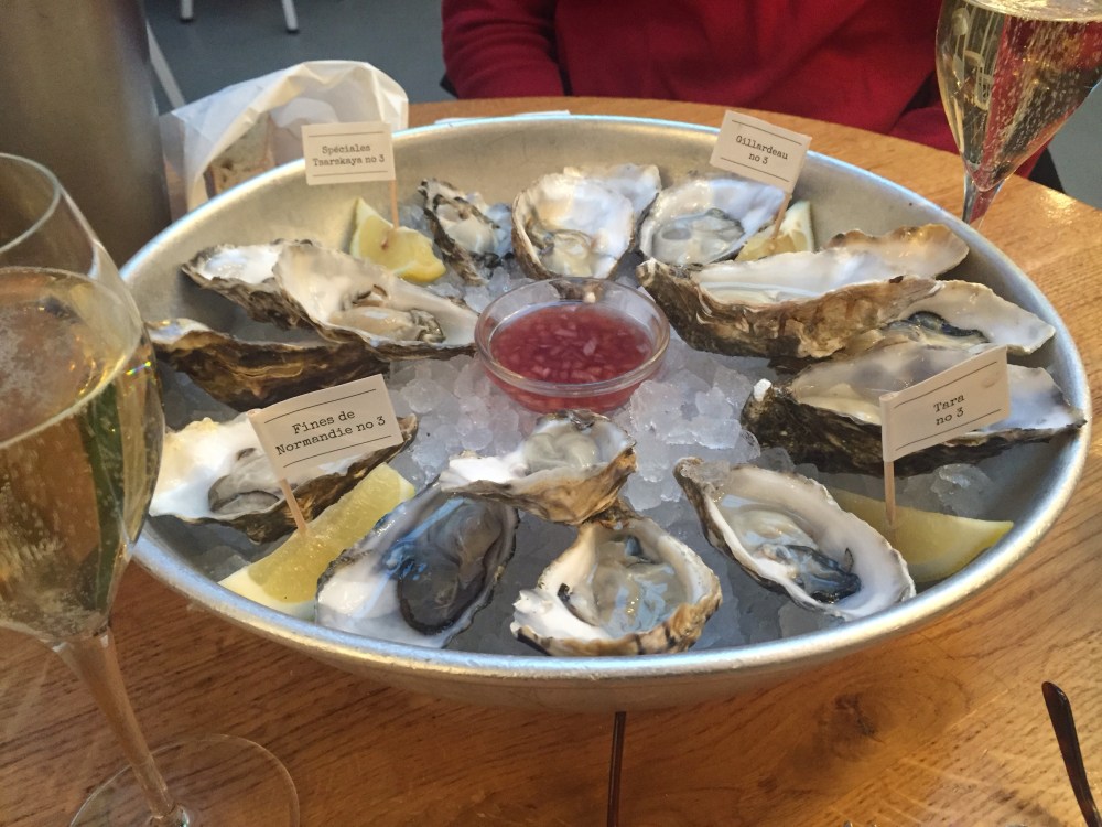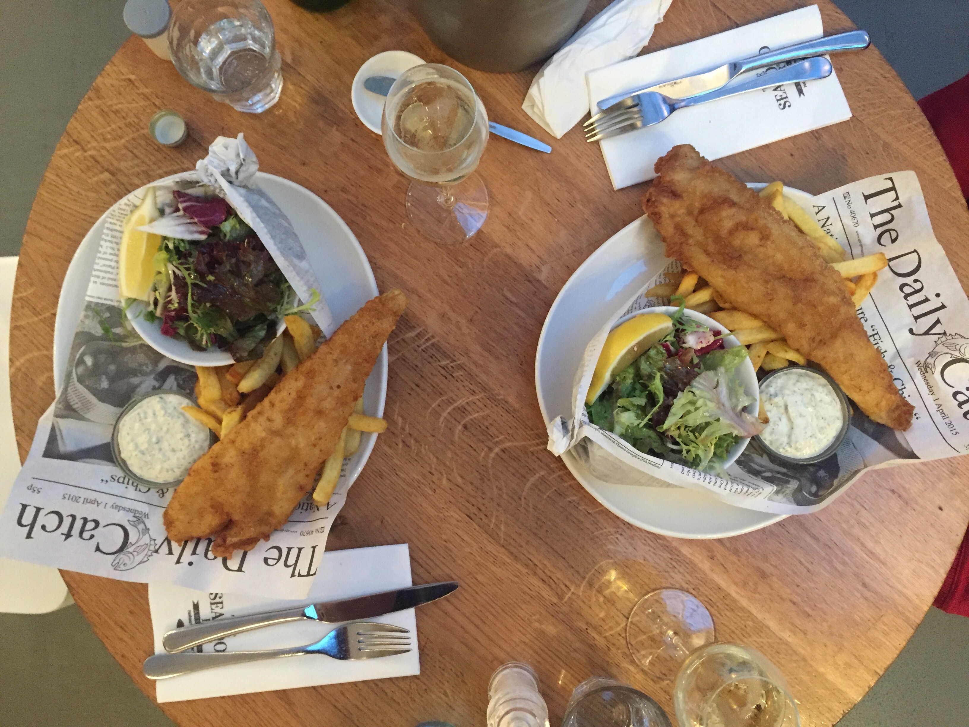 Bright and lively, it’s a place where you can get some fresh seafood cooked perfectly and served to you by attractive young waitstaff with a smile and a quip. For some reason we always get the same thing. A plate of 16 mixed oysters, fish and chips and a bottle of Ruinart champagne. Any time we’ve tried to stray from that formula we usually spend about 45 minutes trying to pick something else from the menu and then end up ordering the same thing anyway. And it’s not for lack of enticing options. Everything sounds (and looks) delicious. Maybe one of you could try something else from the menu and tell me about it.