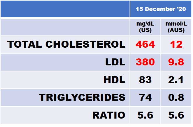 Remember late last year when I had my annual medical exam for work after a month of eating carnivore, and the doctor was absolutely appalled at my cholesterol results?  They were the highest figures he had ever seen, and I’m not exaggerating when I tell you that he was absolutely terrified for me, urging me on the phone to please start taking statins immediately so that I wouldn’t drop dead on the spot.  I objected.  I am extremely reluctant to willingly go down the slippery slope of a lifetime course of medication unless there is absolutely no other option.  And I knew that in this case, I could lower my cholesterol with diet.  So I asked him for the chance to do that, and I was given two months to prove that I could.
