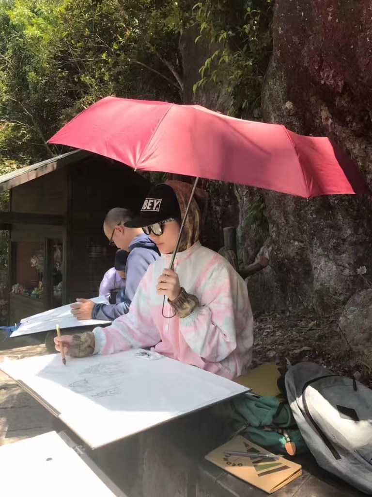 I was born and grew up in Guangzhou, China. Cantonese and Mandarin are my mother tongues. My English education began with my mother, who served as my father’s translator in the 90s; she isn’t so proficient now due to lack of practice. My father only speaks his dialect and isn’t keen on learning new languages. From an early age, he taught us calligraphy and seal carving, but because I was too playful, I didn’t learn calligraphy well, which I regretted later in university (where I was even more playful, haha!). We visited parks every year for our birthdays, so it’s fair to say we’ve explored all the parks in Guangzhou. I joined a sketching training camp one summer in middle school which meant I woke up at 5am and finished at around 5pm every day. And in the final semester of high school, I attended a painting training camp. My sister and I were admitted to one of China’s top art colleges. Traditional Chinese painting is something that I picked up in university and have been studying since.